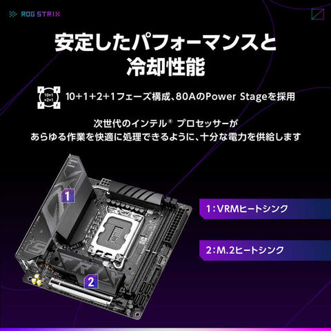 VRM ヒートシンクアレイ、ヒートシンク付きM.2スロット、M.2 バックプレート