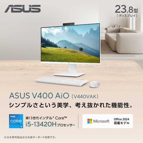 ASUS エイスース デスクトップパソコン V400 AiO (V440VAK) [ 23.8型 / Win11 Home / Core i5 / メモリ16GB / SSD512GB / Office ] ホワイト V440VAK-WPC026WS