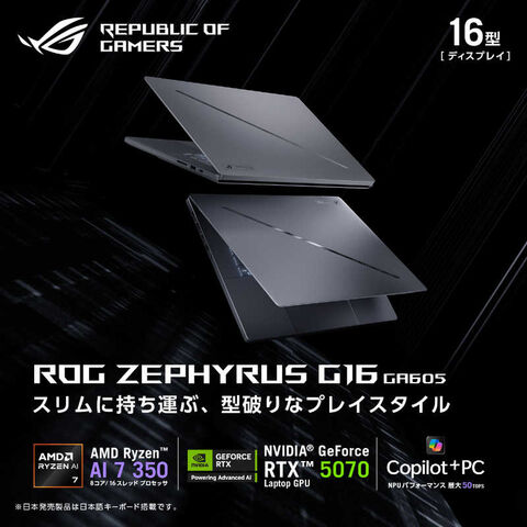 ASUS エイスース ゲーミングノートパソコン ROG Zephyrus G16 [ RTX 5070 / 16型 / Win11 Home / Ryzen AI 7 / メモリ32GB / SSD1TB ] エクリプスグレー GA605KP-AI7R5070G