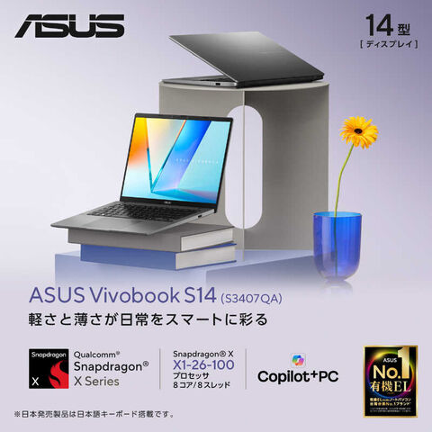 ASUS エイスース ノートパソコン Vivobook S14 [ 14型 / Win11 Home / Snapdragon X / メモリ16GB / SSD1TB ] マットグレー S3407QA-PU161GRのレビュー