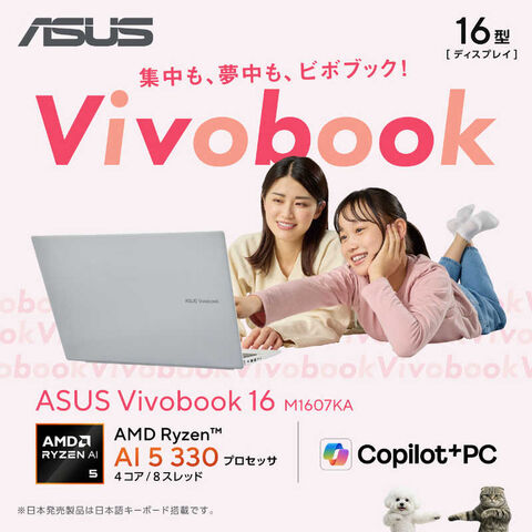 ASUS エイスース ノートパソコン Vivobook 16 [ Copilot+ PC / 16型 / Win11 Home / Ryzen AI 5 / 16GB / 512GB / M365 or Office ] M1607KA-AI5165SISB