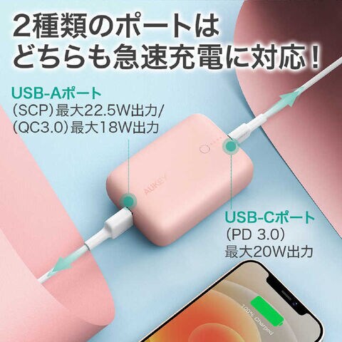 モバイルバッテリーの充電時にも急速充電が可能でフル充電までの待ち時間の短縮が可能です。