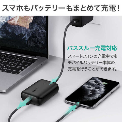 モバイルバッテリーを充電しながら同時に機器の充電が可能なパススルー充電に対応。