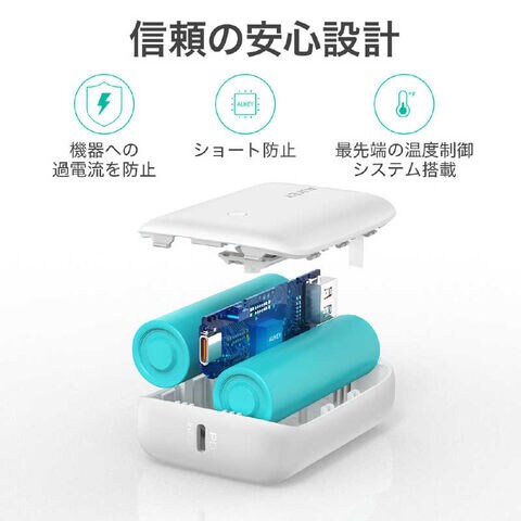 ショート防止機能で発火のリスクを低減し、安心して製品をご使用いただけます。