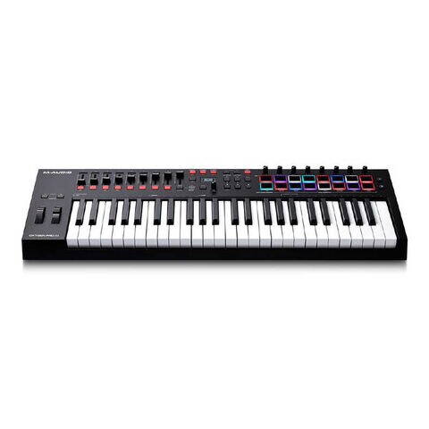 クラス最高水準のベロシティ/アフタータッチ対応の49鍵セミウェイトキーボード、各種機能アサイン可能ビートメイク、クリップローンチで使用できるNote Repeat機能に対応した16個のRGBバックライト付き、ベロシティ対応/アサイナブル・パッドバーチャル・インストゥルメント、エフェクトプラグイン、DAWパラメーターなどをコントロール可能な8つのアサイナブルノブ/ボタンバーチャル・インストゥルメント、エフェクトプラグイン、DAWパラメーターなどをコントロール可能な9つのアサイナブルフェーダーPreset/DAWボタンでDAWやプラグインパラメーターの自動マッピングが可能和音を奏でるコードモードと、和音の設定をカスタマイズできるスケールモードスケールモードでは任意のキー以外鳴らない設定にできるので、音楽制作がより簡単にType/Octave,/Gate/Swingのコントロールが可能なアルペジエーター インチサステイン・ペダルと端子人間工学に基づき設計されたピッチベンド&モジュレーションホイール外部MIDI デバイスとのUSB MIDI接続を可能にする5ピンMIDI出力素早いコントロールエディットを可能にするOLED画面など、直感的な操作ができる機能のレイアウトMIDIエディターソフトウェア、音楽制作ソフトウェア付属プロフェッショナルな音楽制作M-Audio Oxygen Pro 49は、クリエイティブな音楽制作を実現するために必要なツールが揃ったポータブルでパワフルなUSB搭載MIDIコントローラーです。