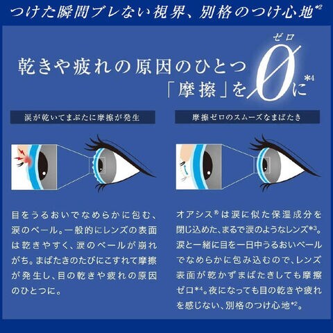 レンズの表面の涙が乾きにくく、1日中なめらかな表面を維持します。まばたきの際、まぶたとレンズの摩擦がゼロなので目に負担がかかりません。