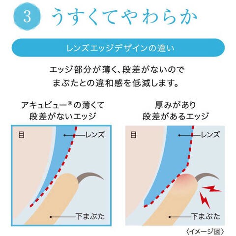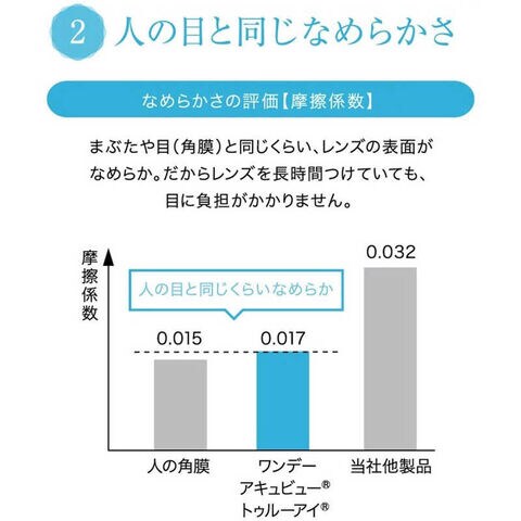 アキュビュー独自のテクノロジーで、まぶたや目(角膜)と同じくらい、レンズの表面がなめらか。