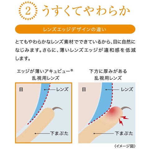 レンズのエッジが薄いから、まばたきの際にまぶたへの刺激が少ない。