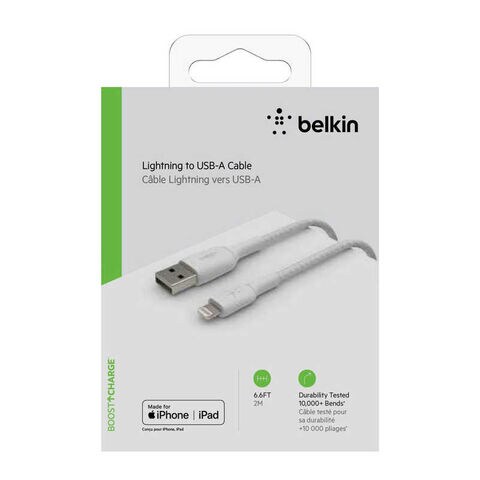 BELKIN BOOST↑CHARGE USB-A to ライトニング 高耐久編み込みケーブル 2m ホワイト CAA002bT2MWH [2m]