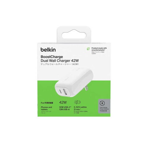 BELKIN BoostCharge 2ポート急速充電器 USB-C 30WPD + USB-A 12W PPS WCB009DQWHJP