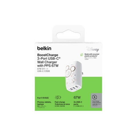BELKIN USB-C 3ポート充電器 PPS 67W [3ポート /USB Power Delivery対応 /GaN(窒化ガリウム) 採用] WCC002dqWHJP-DY