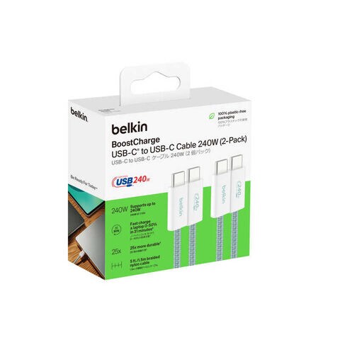 BELKIN 240W USB-C to Cソフトケーブル 1.5M 2本セットグリーン グリーン CAB019qc05GR2PK