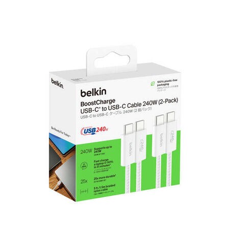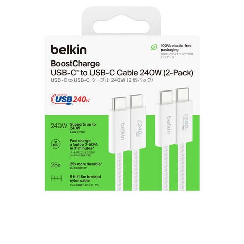 BELKIN 240W USB-C to Cソフトケーブル 1.5M 2本セットホワイト ホワイト CAB019qc05WH2PK