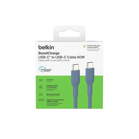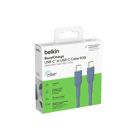 BELKIN USB-C to USB-C ケーブル 60W 2M ブルー CAB023fq2MBL
