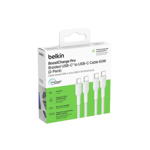 BELKIN USB-C to USB-C 編組ケーブル 60W 1M ホワイト 2本セット CAB024fq1MWH2PK