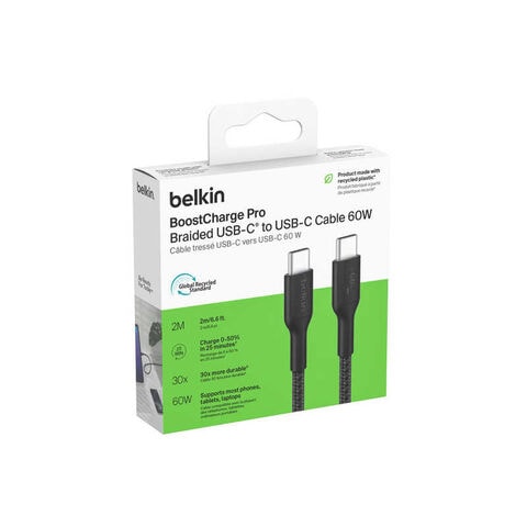 BELKIN USB-C to USB-C 編組ケーブル 60W 2M ブラック CAB024fq2MBK