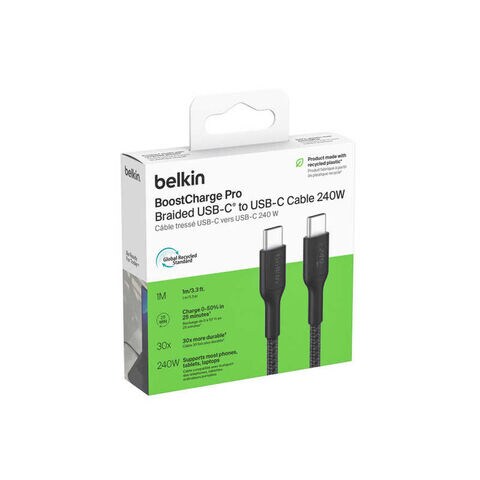 BELKIN USB-C to USB-C 編組ケーブル 240W 1M ブラック CAB025fq1MBK