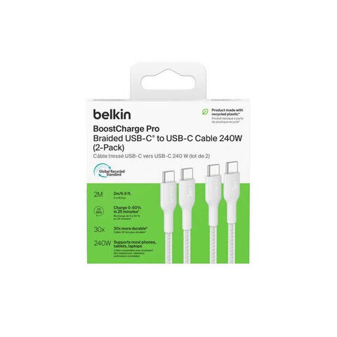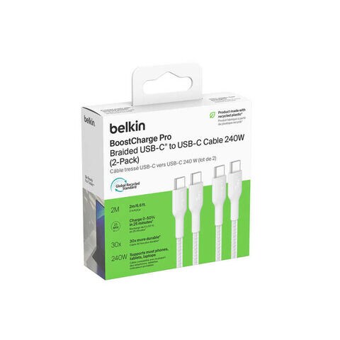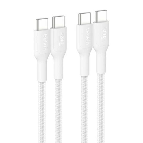 BELKIN USB-C to USB-C 編組ケーブル 240W 2M ホワイト 2本セット CAB025fq2MWH2PK