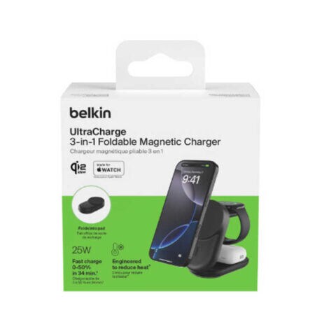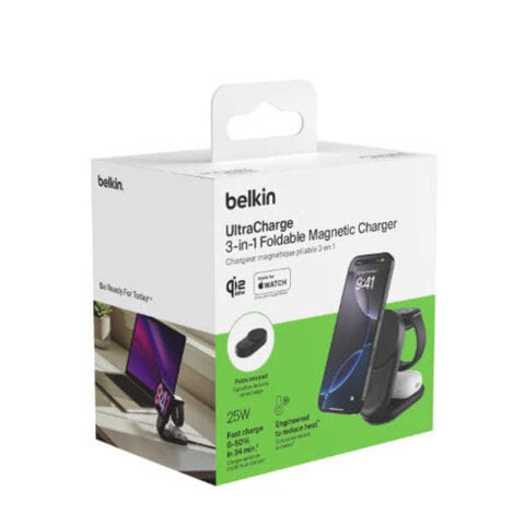 BELKIN UltraCharge Qi2 25W 3-in-1 折りたたみ式マグネット充電器 ラウンド型 ブラック WIZ037dqBK