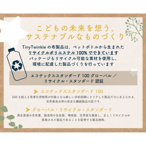 ペットボトルから生まれた環境にやさしいリサイクルポリエステル(rPET)を100%使用しています。