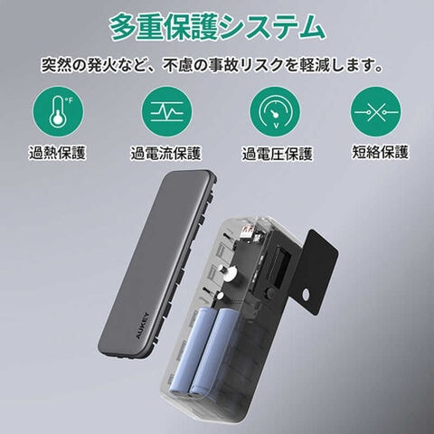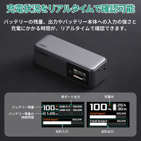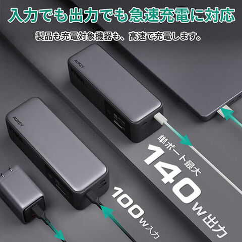 AUKEY モバイルバッテリー Spark Mega 27600 PD&QC対応 140W 27600mAh [USB Power Delivery対応 / 3ポート] グレー PB-Y63-GY