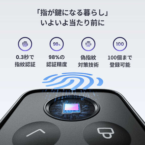 ・シリーズ史上最高コスパのモデルと「指紋認証パッド」がセットに・パスワード、指紋、交通系IC等…最大19種類の解錠方法であなたにとっての“一番便利が必ず見つかる・6つのセキュリティシステムで絶対的な安心を・2重のバッテリー切れ防止システムで万が一の締め出しリスクを最低限に・工事不要で簡単設置&約99%のロックに対応