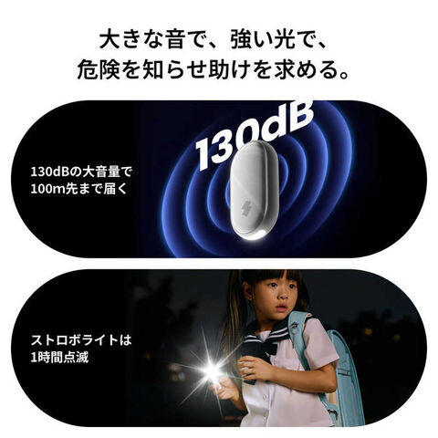 ・大音量防犯ベル×「探す」アプリで子どもの安全を守る ・スマホの「探す」アプリで位置情報を見ながら場所を特定し、130dBの大音量を鳴らして探せます ・懐中電灯の代わりに使用可能 ・指紋認証パッド、顔認証パッド、テレビドアホンの鍵にもなり ・さりげなく身を守る手段としてフェイク通話や家族への通報、犯罪抑止効果に ・カラーは3色展開、ミニサイズで持ち歩きやすい