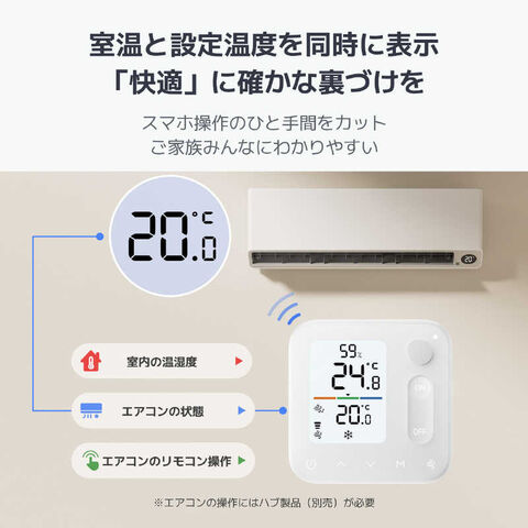 以下の機能はハブとの連携が必要: ・温湿度計・人感センサー・リモートボタン・エアコンリモコンを1台に集約 ・室温と設定温度を同時に確認、温湿度によって自動シーンも設定可能、「快適」に確かな裏づけを ・人感センサー機能で節電、人の長時間の不在を感知すると自動でエアコンをオフ ・2つのカスタムボタンで、赤外線家電やSwitchBotデバイスをスマホさえなしで操作可能