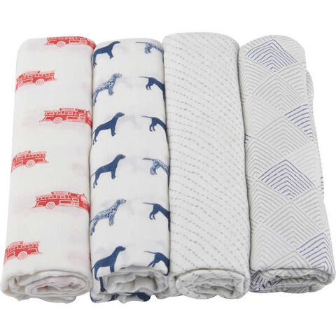 NEWCASTLECLASSICS バンブースワドル4枚セット Fire Truck & Dalmatian ニューキャッスルクラシックス