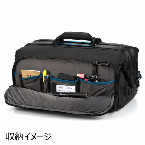 収納例 : マットボックスやその他アクセサリーが付属したソニー、キヤノン、RED、ブラックマジックなどプロ用ビデオカメラ、シネマカメラ、ENGリグ(長さ最大18インチ(46cm)まで)