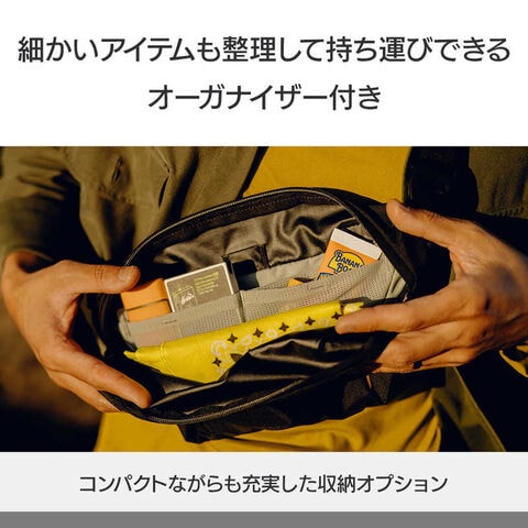アウトドアスリング2Lは、超軽量でコンパクトな、必需品を手軽に持ち運ぶのに最適なスリングバッグです。