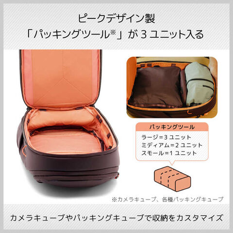 ※別売りのカメラキューブやパッキングキューブを3ユニット収納可能。