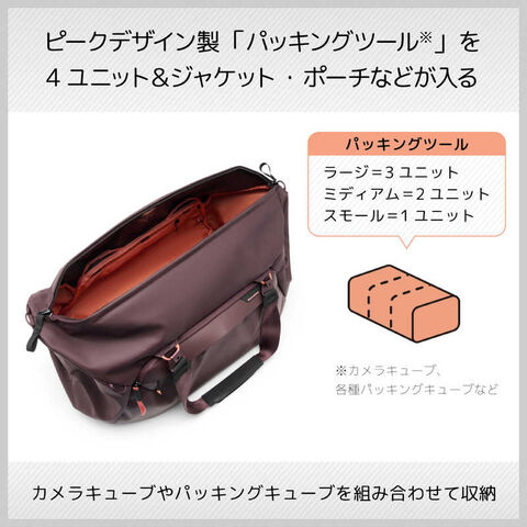 ※別売りのカメラキューブやパッキングキューブを4ユニットに加え、空きスペースにジャケットやポーチ類を収納可能。