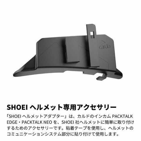 「SHOEI ヘルメットアダプター」は、カルドのインカムPACKTALK EDGE・PACKTALK NEOを、SHOEI社ヘルメットに簡単に取り付けするためのアクセサリーです。