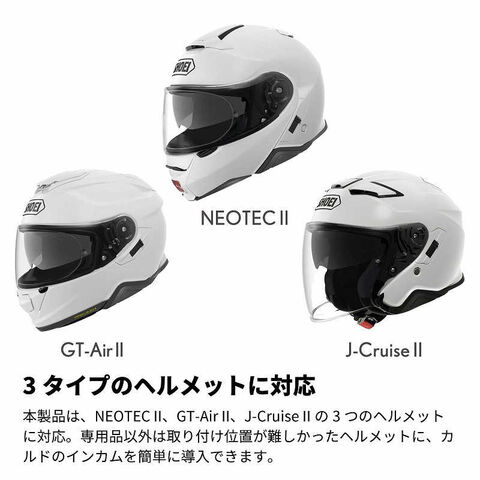本製品は、NEOTEC II、GT-Air II、J-Cruise IIの3つのヘルメットに対応。
