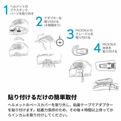 粘着力保持のため、その後4時間以上待ってからインカムを取り付けしてください。