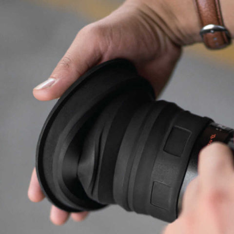 様々なメーカーやサイズで使える!反射しない、かさばらない、傷つけないレンズフードです。