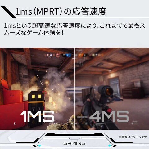 1msという超高速な応答速度により、滑らかな映像のゲーム体験をお楽しみいただけます。