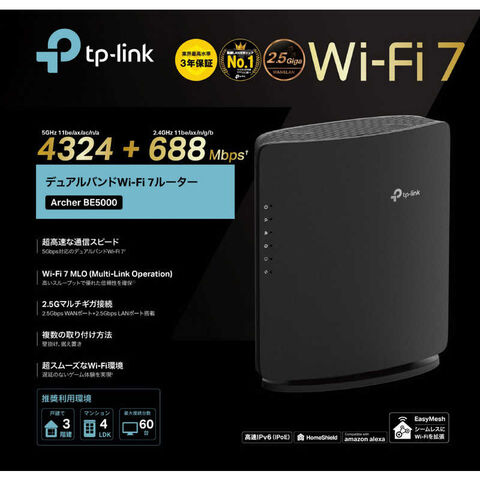 TPLINK Wi-Fi 7 無線LANルーター 4324+688Mbps BE5000 2.5ギガ [Wi-Fi 7(be) / IPv6対応] ARCHERBE5000