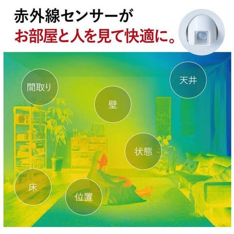 ・ムーブアイ:赤外線センサーが、床や壁などの温度から体感温度を測り、冷やしすぎやあたためすぎを防いで快適。