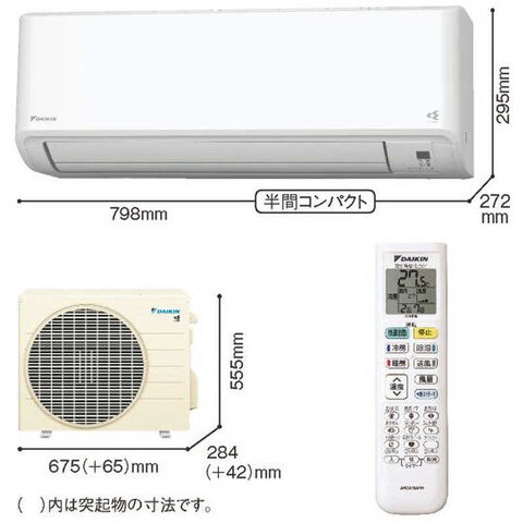 室外機サイズ(幅×高さ×奥行)mm:675(+65)×555×284(+42)mm