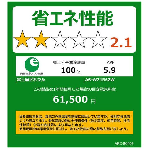 ●型式:AS-W715S2W フィルター自動お掃除機能付(ASW715S2W+AOW715S2)