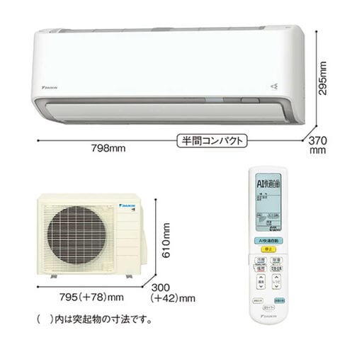 室内機サイズ(幅×高さ×奥行)mm:798×295×370mm
