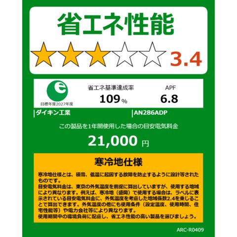 (標準取付工事費込)ダイキン DAIKIN エアコン 2026年 スゴ暖 Dシリーズ おもに10畳用 200V 極暖・寒冷地仕様 ホワイト AN286ADP-W フィルター自動お掃除機能付のレビュー