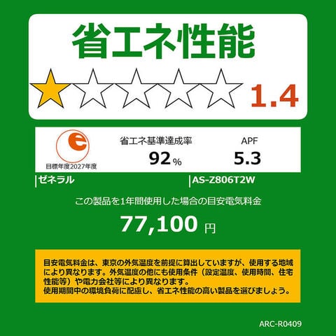 (標準取付工事費込)ゼネラル GENERAL エアコン 2026年 nocria(ノクリア)Zシリーズ おもに26畳用 ホワイト AS-Z806T2-W フィルター自動お掃除機能付