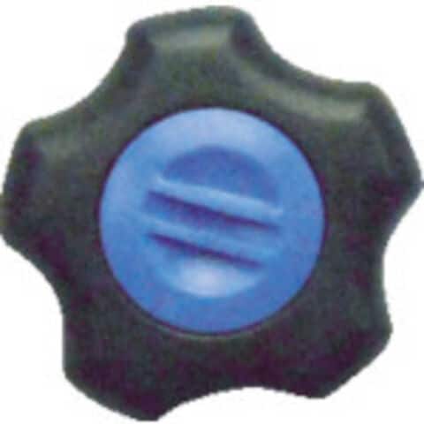 外径(mm):36、ノブ高さ(mm):20、ねじ寸法:M6、ねじ深さ(mm):15、キャップ色:青、質量(g):54