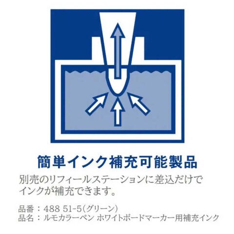 ●ステッドラー独自の特殊インクがペン先に薄い皮膜を作り、2日間ペン先が乾燥を防ぐ、とても便利なホワイトボードマーカー●速乾性があり文字流れも少なく、消した時に芯粉が出にくいのも特徴 ●別売りの補充インクにペンを差し込むだけで、手も汚さずに簡単補充 ●GPN エコ商品ねっと掲載。