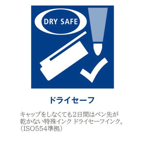 ★ドライセーフインクがペン先に薄い皮膜を作り、2日間ペン先の乾燥を防ぎます。(ISO554)