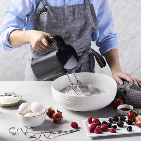 生クリームの泡立てやクッキー生地を混ぜるのに便利なビーターと、パン生地などを捏ねることができるニーダーどちらも付属