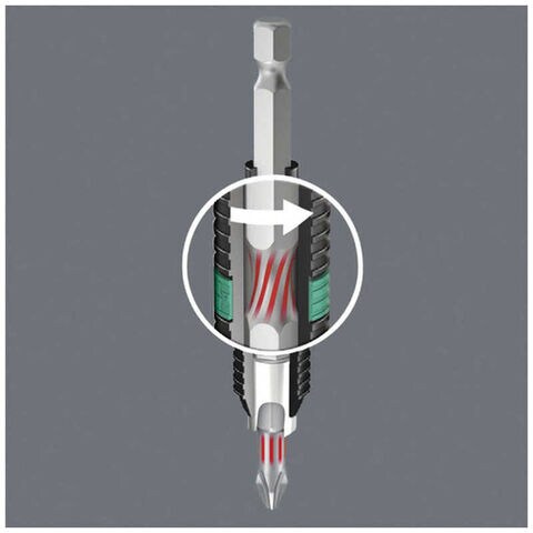 ●専用のビットホルダ(053923)と併用することで、2つのトーション(バイトーション)が作用し、ビットの長寿命化を実現しています。